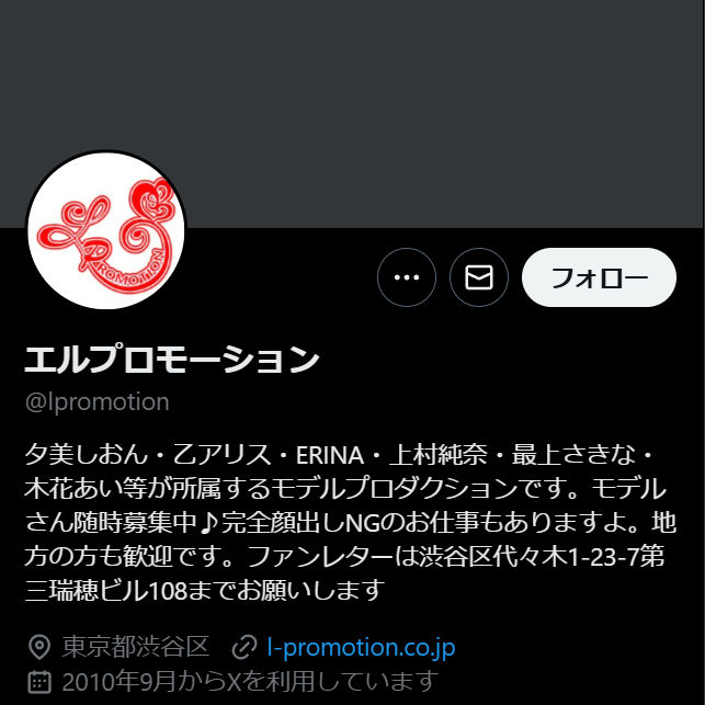 エルプロモーションに関して、X(旧Twitter)に「エルプロモーション@lpromotion」のアカウントや、所属女優のアカウントが見つかりました。実態のあるAVプロダクションの求人情報だと判断できます。